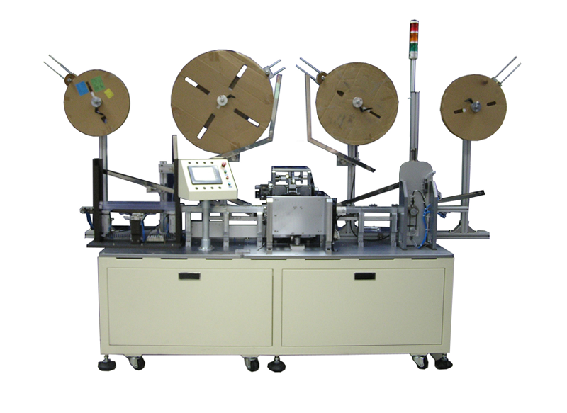 它是一套整合端子(4種Type)入料、切Pin模組、帶端子機構、料管(膠體)入料、膠體方向判別機構、帶膠體機構、插針模組、料管(成品)出料的自動化系統,並搭配觸控式PLC人機控制介面、紅-黃-綠三色指示燈,以即時控制插針機台的動作狀況。